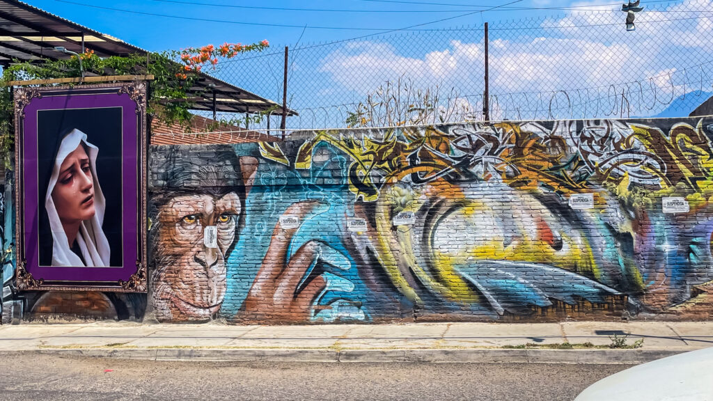 This weekend, though, was a different story. Dan and I left Friday night for Oaxaca, and we spent the weekend wandering the streets and plazas of this sultry city, poking our head in churches, studying protest street art, and indulging in all things Oaxacan – stringy queso, chocolate-y mole, tejate, tlayudas, and of course – MEZCAL. It was a much-needed adventure after a week stuck in a windowless room.