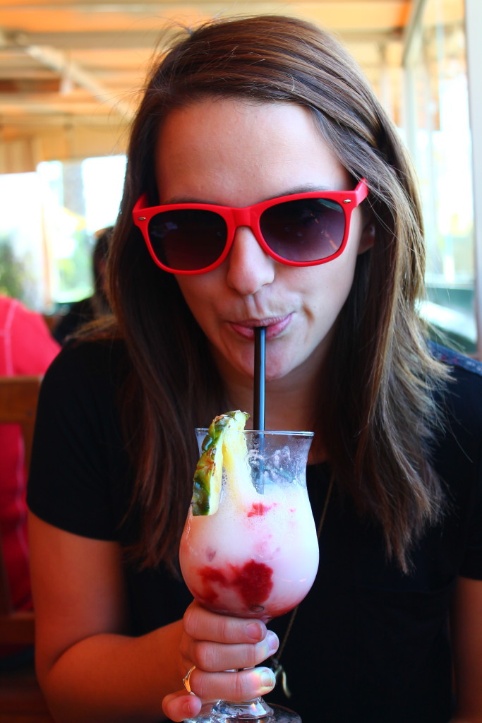 Okay, call us massive dorks, but we were thrilled at our luck. We sat down for brunch at Sandy’s Beach Grill (un-surprising detail alert: I ordered a Lava Flow at 11am!) and lay back to enjoy the show.