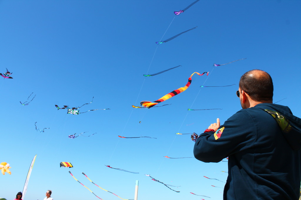 And it was a show! We’d never seen kites like these. There were speed and trick kites that darted around the sky in quick bursts, flipping and turning so violently I’d be surprised if their owners didn’t accidentally take out a seagull or two. There were massive ones that had several smaller kites flowing behind them, looking like giant barges floating in the air. There were kites with pinwheels, spinning bits and even one shaped like a diamond.