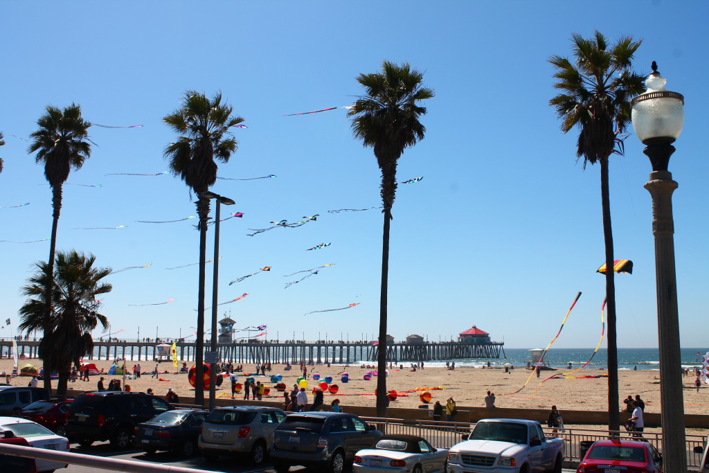 We made it to Huntington Beach, parked near the pier, and immediately spotted dozens of brightly colored kites soaring over the beach. We’d stumbled across the annual Huntington Beach Kite Party!