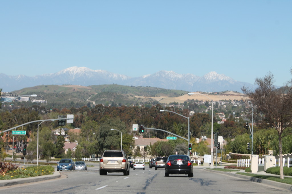 After zipping over to Fullerton and checking out the installation, we were hopping in the car to head back to LA when we both stopped to admire the snowy mountains for the 100th time that day. Suddenly, Chris had a genius idea.