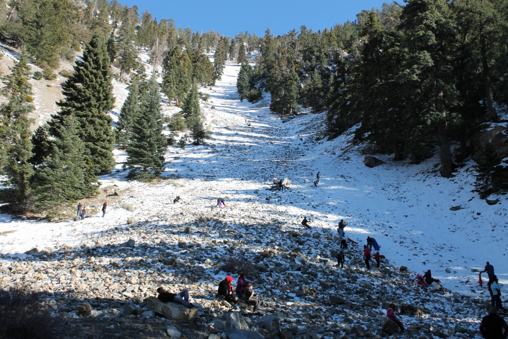 After an hour of driving, we finally reached the small village of Mount Baldy. We’d driven up there once before in December, thinking we were going snow tubing but stupidly hadn’t checked the forecast. If we had, we would have seen there was no snow and it was a pleasant 72 degrees.