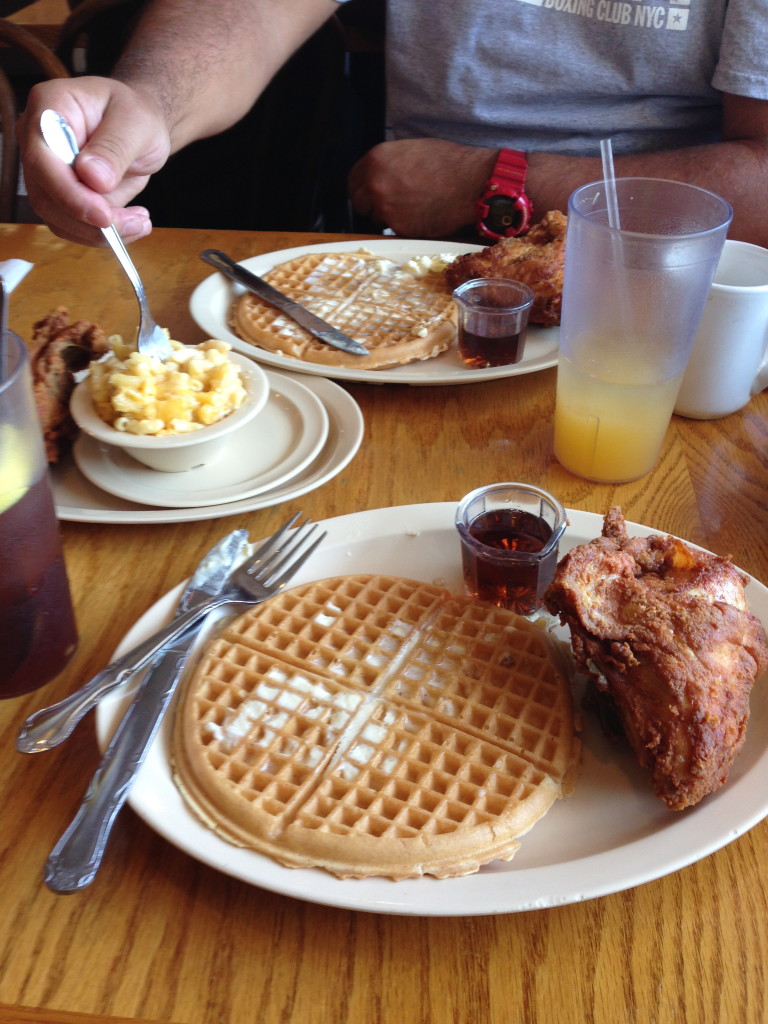 At the end of the hike, we felt even stronger and more victorious (albeit a lot more sore and blistered!) than we had the after the previous week’s hike. We decided to reward ourselves with lunch at Roscoe’s Chicken and Waffles in Pasadena, which we’d spotted on the way to the trailhead. I’ve never felt like I earned a plate of fried chicken and waffles more that I did with that hike! Apparently my adventures always come with a paired meal afterwards! What can I say….I love to eat even more than I love adventures.