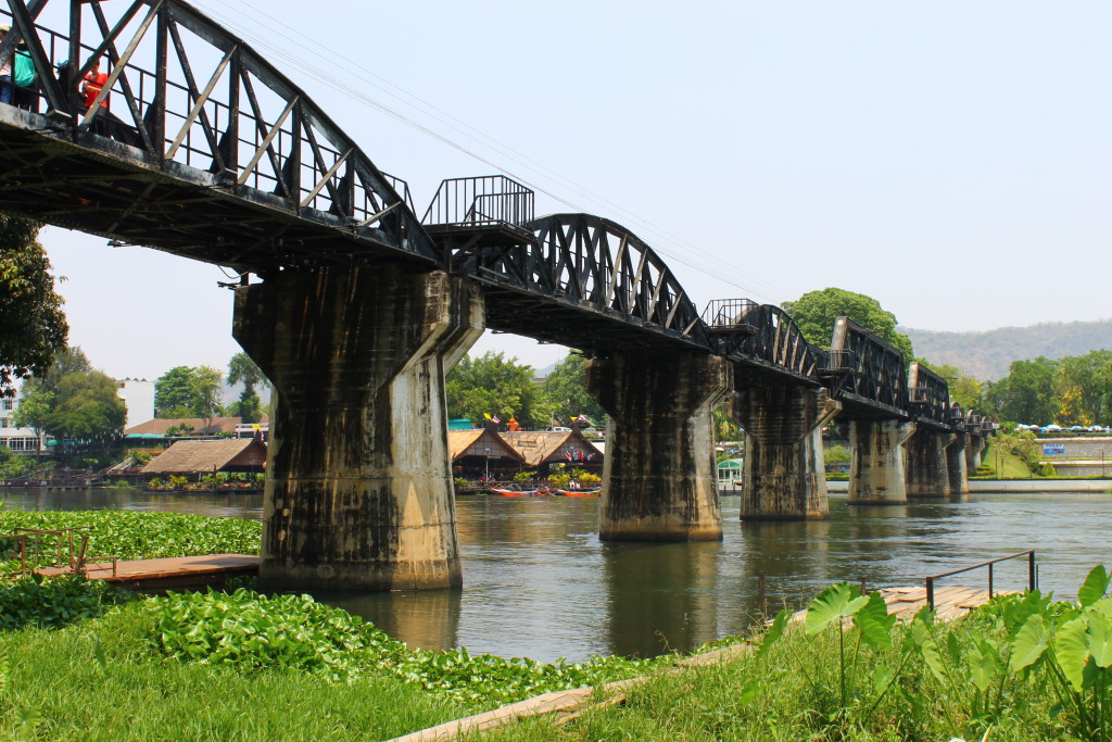 Afterwards we rode to the last stop, which was the infamous bridge over the River Kwai. You can actually climb up and walk across the bridge itself, and even though it was crowded with tourists, it was still pretty amazing. It definitely helped that it was a gorgeous day (sweltering heat aside) and I found a nice quiet spot away from the crowds under a tree along the riverbank.