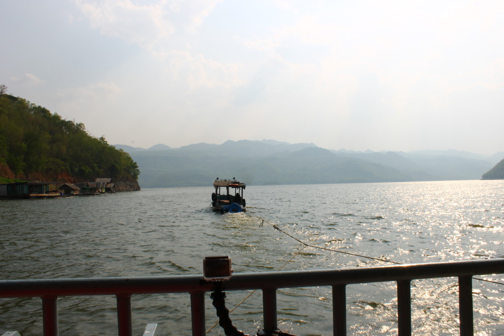 After our bike tour, we hopped in our van that took us to Si Nakharin Dam National Park, where we boarded a raft house, our home for the night. As the speed boat towed us out onto the reservoir, we sat with our feet up, drinking beer and admiring the hazy hills surrounding the reservoir.