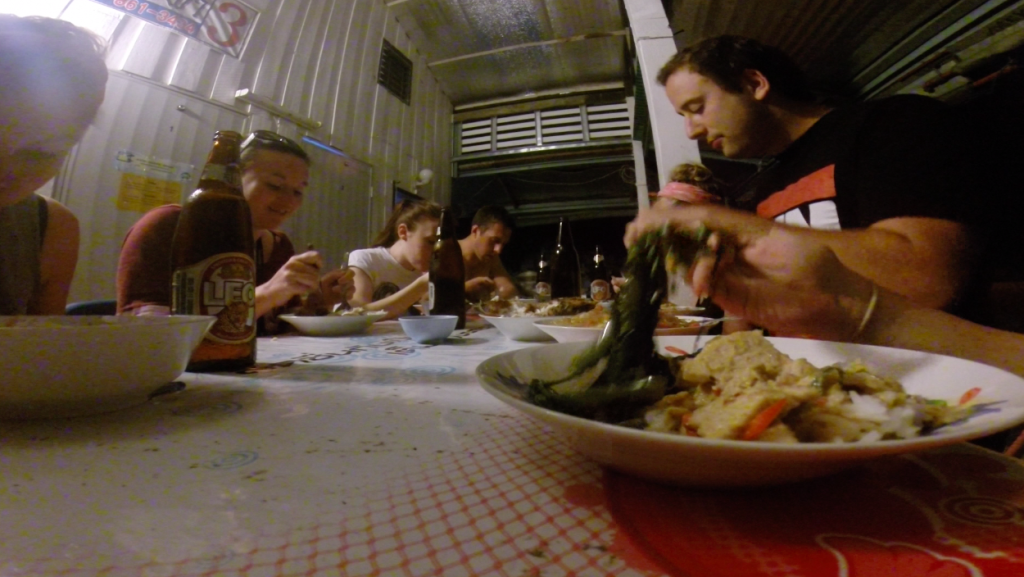 Speaking of food, our guide Neung cooked us an amazing Thai meal on the raft house that we ate together under the stars. She made baked fish, panang curry, glass noodles and morning glory. Everything was incredible, and it was a fitting end to a fabulous day.