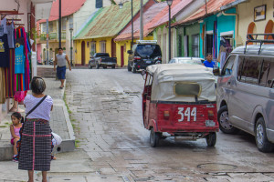 When we made it to Santa Elena, just outside of Isla de Flores, we then had to get in a tuk tuk to take us to the island. A tuk tuk! I love tuk tuks. They were a blast to ride around in back in Southeast Asia, but I wouldn’t recommend it for three exhausted travelers with three large backpacks. It was a bit cramped.
