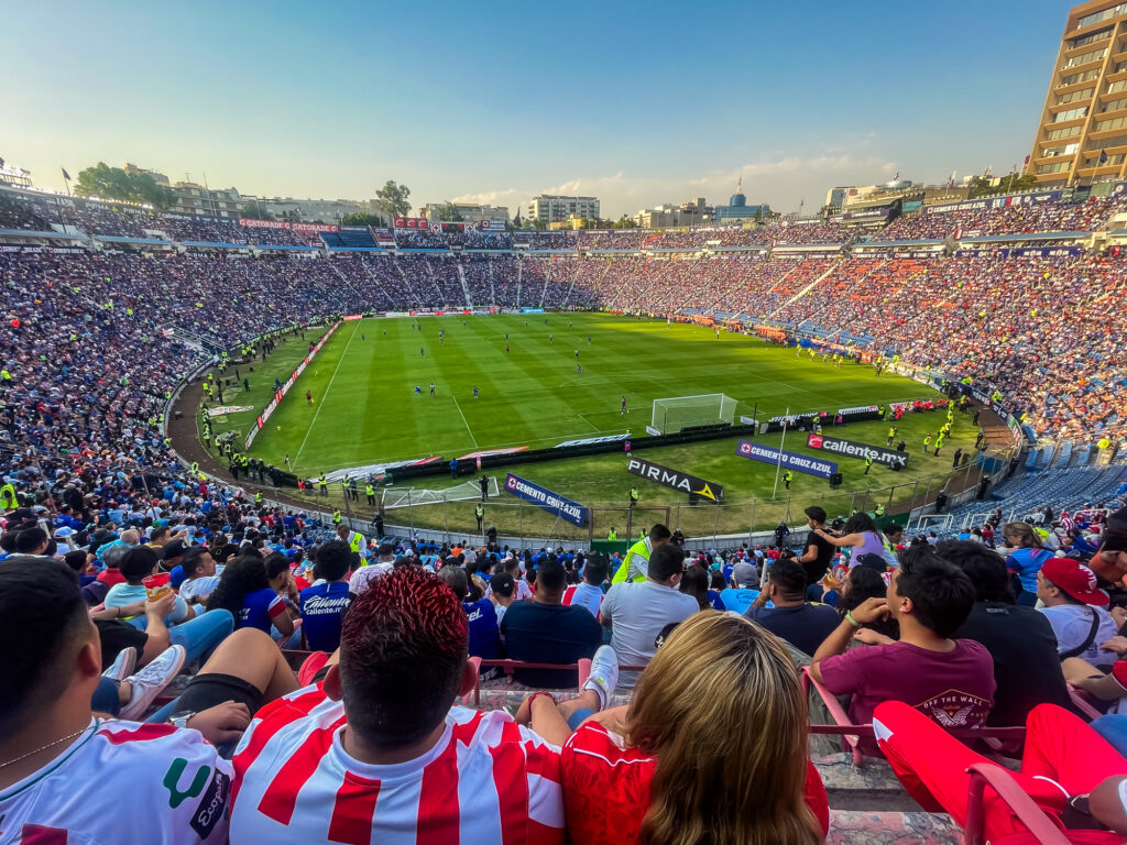 We went to Cruz Azul match on Saturday and somehow ended up in the visiting team section, which was…rowdy. I was shocked to see they separate the sections with barbed wire fence and there were hundreds of police in riot gear in attendance to keep the peace. Wow.