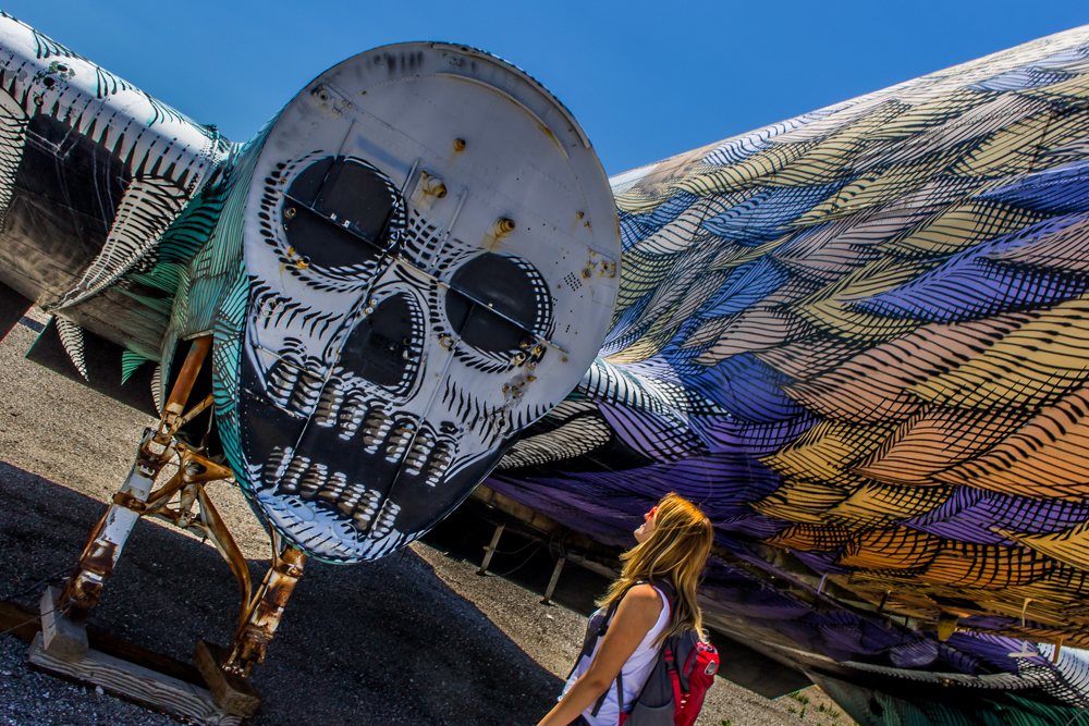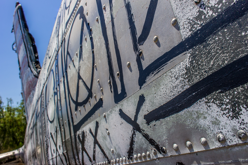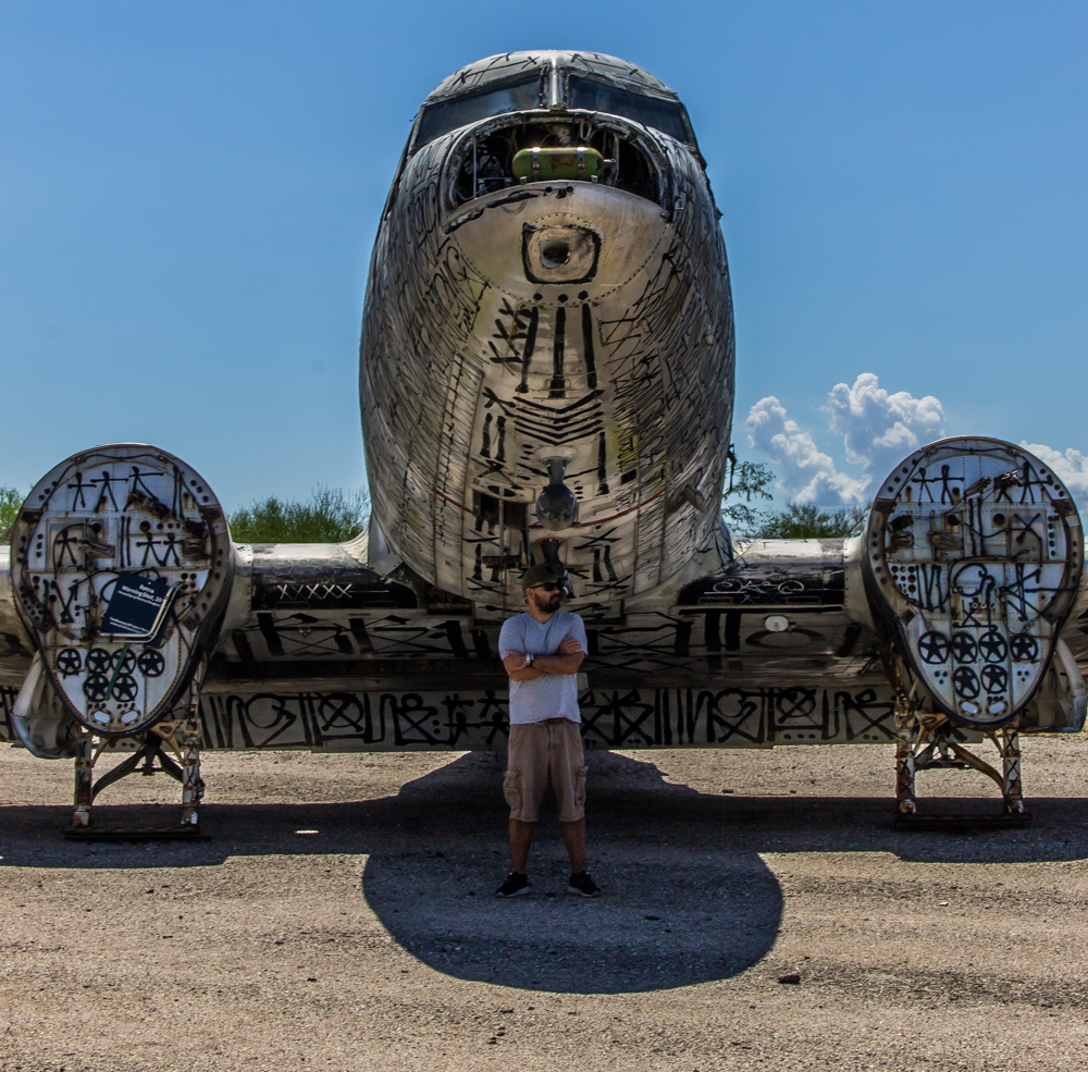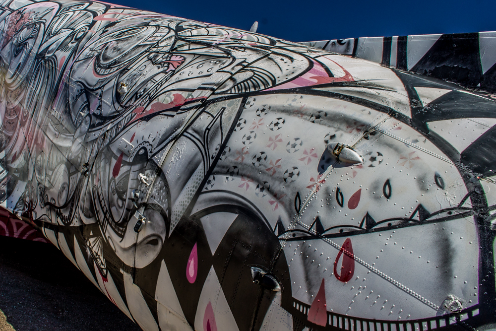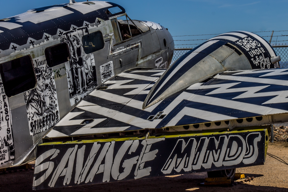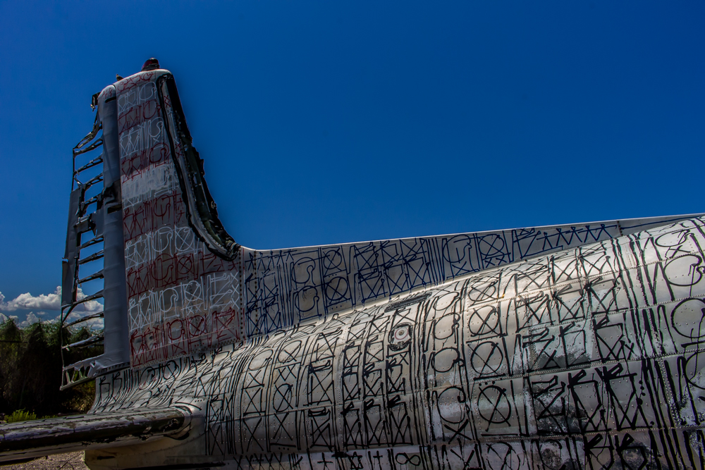 But when my friend Chris (known around here as The Brit) stumbled across some photos of abandoned airplanes painted by some notorious street artists, parked somewhere in the Arizona desert, he was intrigued. Being the kind of airplane aficionado that can spot an aircraft thousands of feet in the sky and tell you who made it, the model, how many people it can carry and where it’s probably coming from, he asked me if we could stop.
