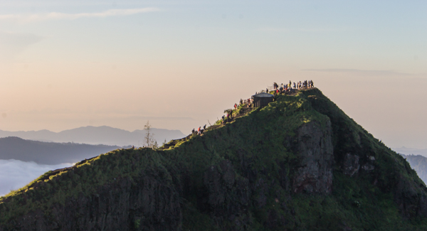 Then suddenly, like the birthday girl arriving late to her own party, the sun broke the horizon, illuminating what was now hundreds of travelers that had assembled on the top of Batur to welcome her.