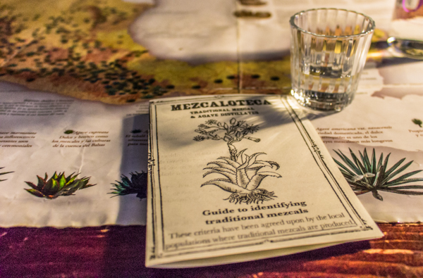 The bartender walked us through the alcohol content required of a “true” mezcal (45 proof!) and showed us how to test the purity by shaking the bottle to make fizzy pearls appear at the top. He told us to avoid flavored or aged mezcals, because they weren’t made in the proper traditional way.