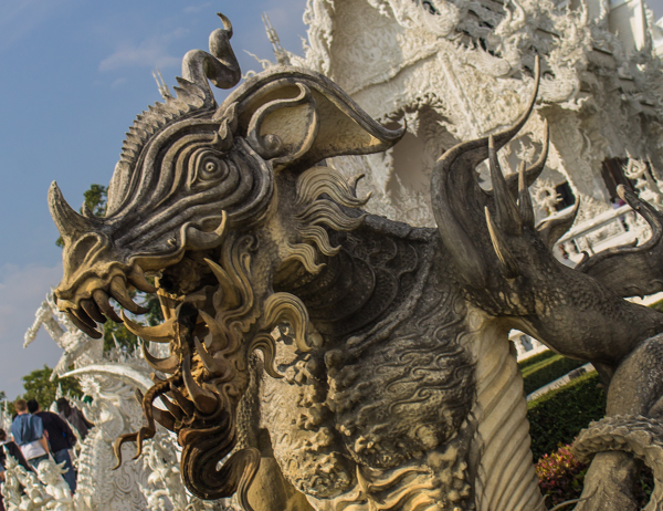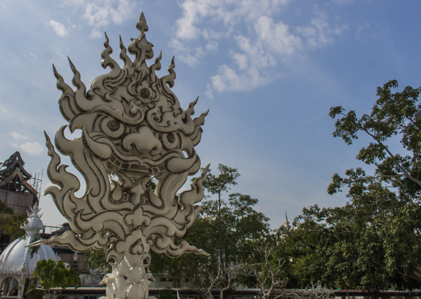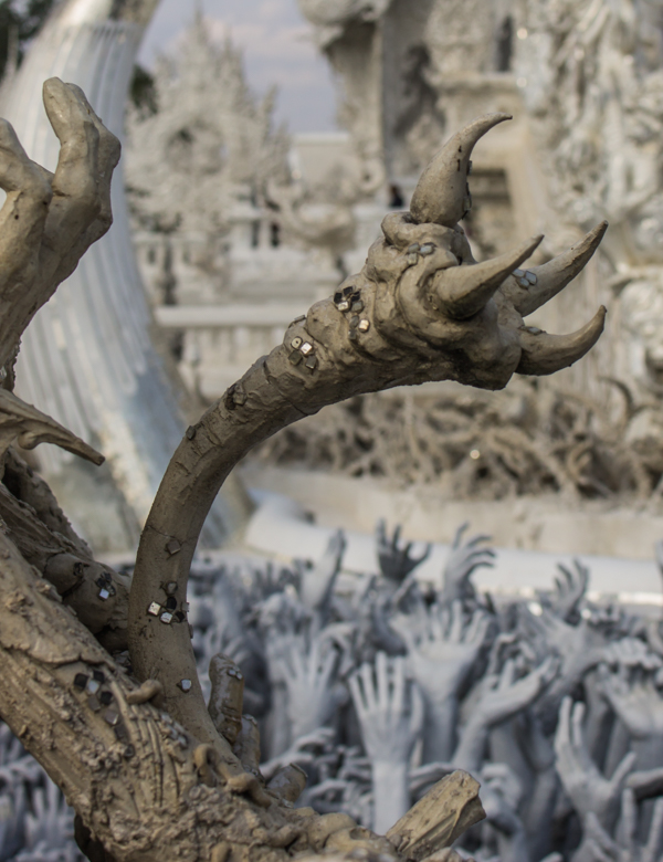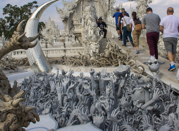 Of course, Wat Rong Khun isn’t like other temples in Thailand. To start, it wasn’t built hundreds of years ago to house monks or enshrine a relic from the Buddha. It isn’t bathed in red, blue and gold decorative elements, as most other wats in the country.